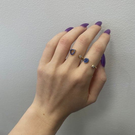 Sidabrinis auksuotas žiedas su mėlynais cirkoniais