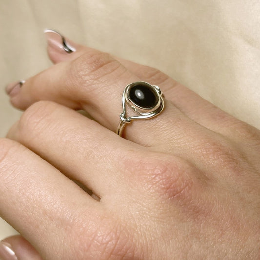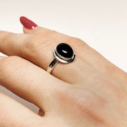 Sidabrinis žiedas su ovaliu onikso akmeniu