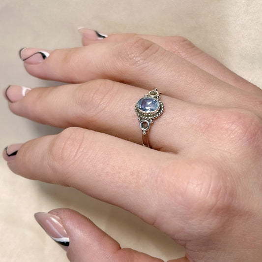 Sidabrinis žiedas su cirkoniu dengtas žydru emaliu