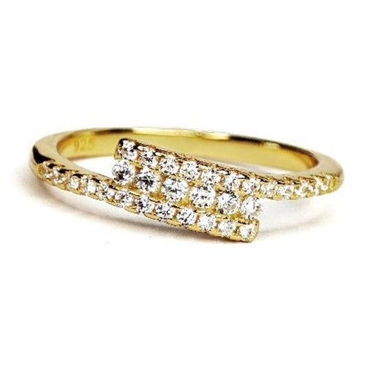 Sidabrinis auksuotas žiedas su 5 eilėmis cirkonių