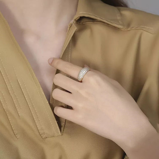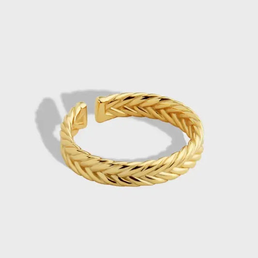 Sidabrinis auksuotas platus reguliuojamo dydžio žiedas