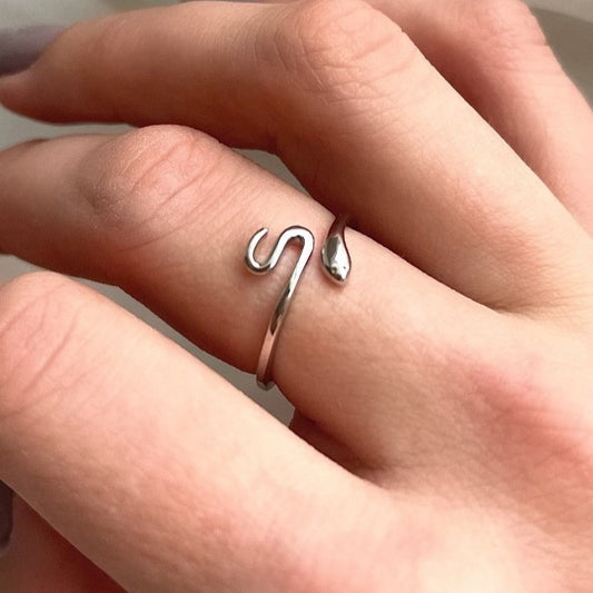Sidabrinis rodžiuotas reguliuojamo dydžio žiedas gyvatėlė