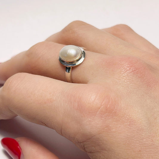 perlas ¦ sidabrinis žiedas su tikro perlo ovalia akute