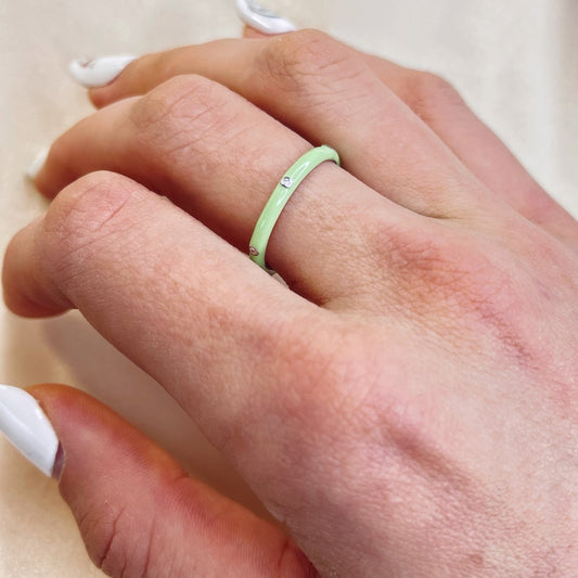 Sidabrinis žiedas su cirkoniu dengtas žaliu emaliu