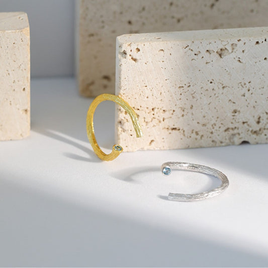 Sidabrinis auksuotas reguliuojamo dydžio žiedas su žydra cirkonio akute