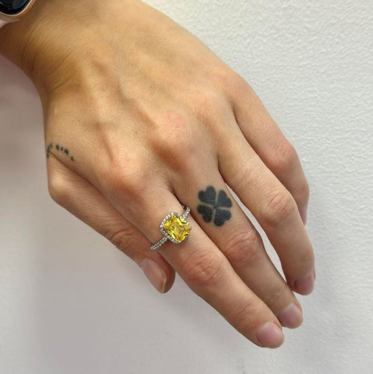 Sidabrinis rodžiuotas žiedas su citrino spalvos cirkoniu