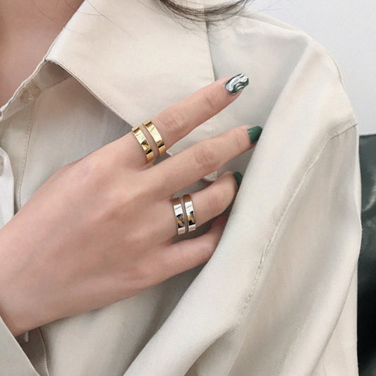 Sidabrinis rodžiuotas dvigubas reguliuojamo dydžio žiedas su cirkoniais