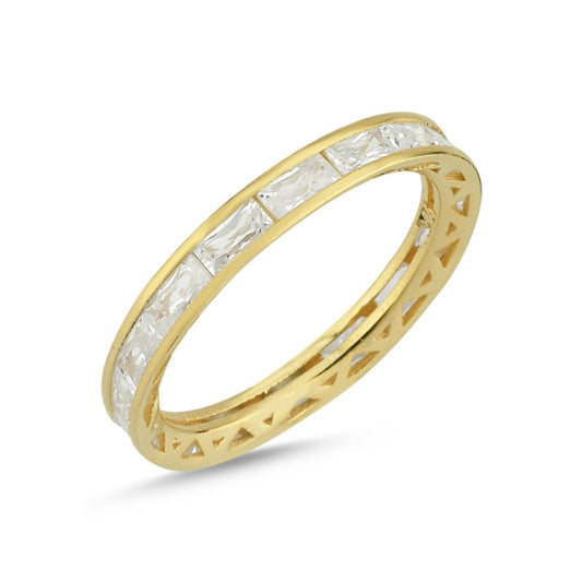 Sidabrinis auksuotas 3mm pločio žiedas su pailgais cirkoniais