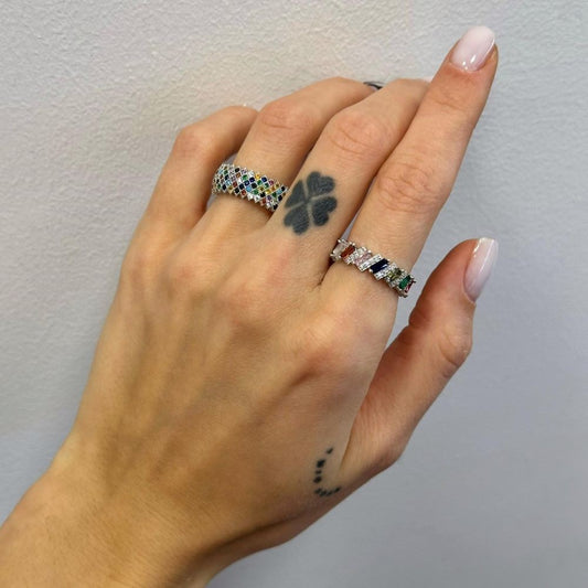 1mm ¦ rodžiuotas žiedelis su spalvotais cirkoniais