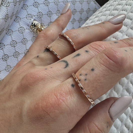 Dvigubas sujungtas žiedas su 3 cirkonių eilėmis
