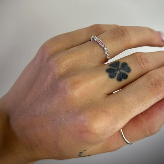 Sidabrinis rodžiuotas žiedas su rožiniu cirkoniu