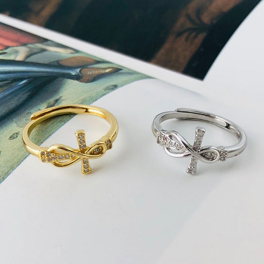 Sidabrinis paauksuotas reguliuojamo dydžio žiedas su kryželiu
