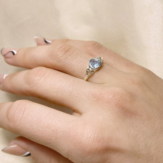 Sidabrinis auksuotas žiedas su mėlyna cirkonio akute