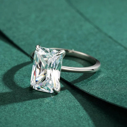 Sidabrinis rodžiuotas žiedas su pailgu stačiakampiu cirkoniu
