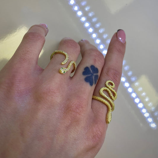 Sidabrinis paauksuotas reguliuojamo dydžio žiedas gyvatėlė