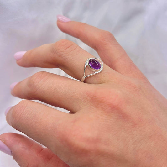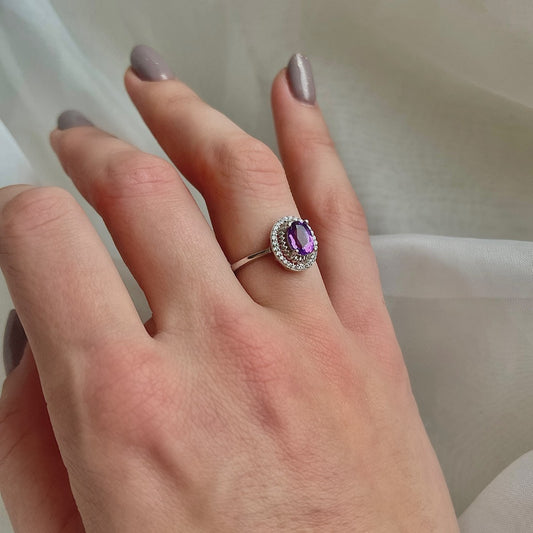 Sidabrinis reguliuojamo dydžio žiedas su ametistu