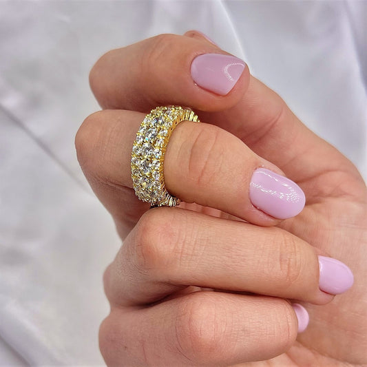 Sidabrinis auksuotas žiedas su cirkoniais "Half eternity"