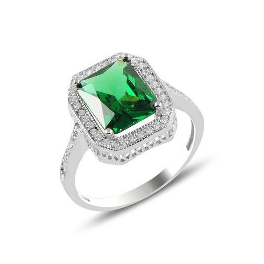 Sidabrinis rodžiuotas žiedas su žaliu stačiakampiu cirkoniu