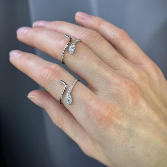 Sidabrinis rodžiuotas reg. dydžio žiedas gyvatė su cirkoniais
