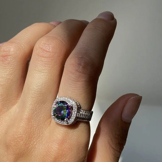 Sidabrinis rodžiuotas žiedas su mistiniu topazu