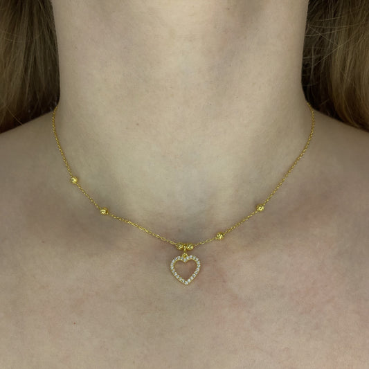 Sterling Silver Rhodium Plated CZ Heart Necklace