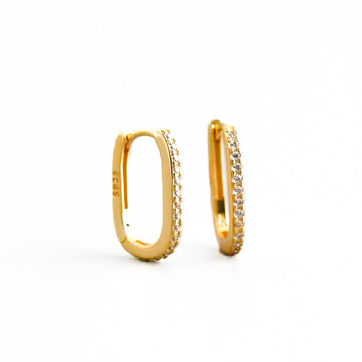 Sterling Silver Oval Hoops with CZ
