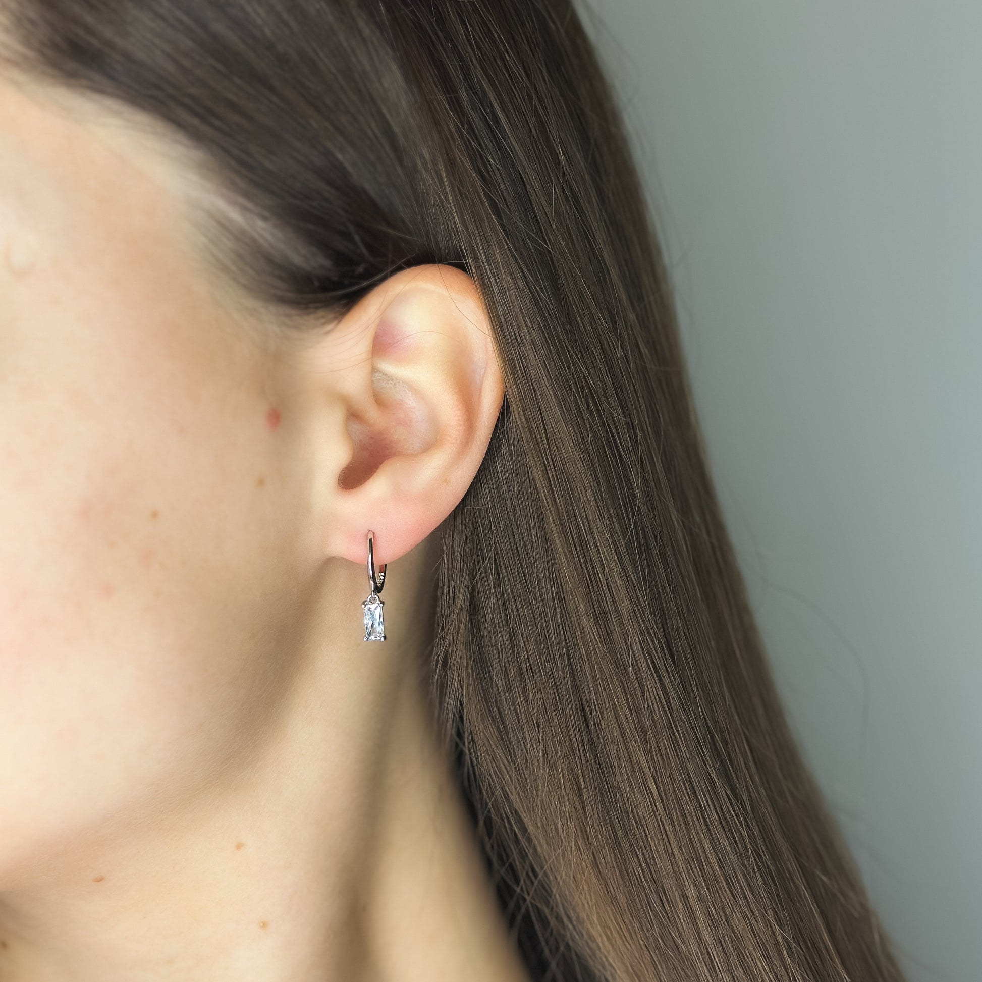 Sterling Silver Rhodium Plated Hoops with Charms