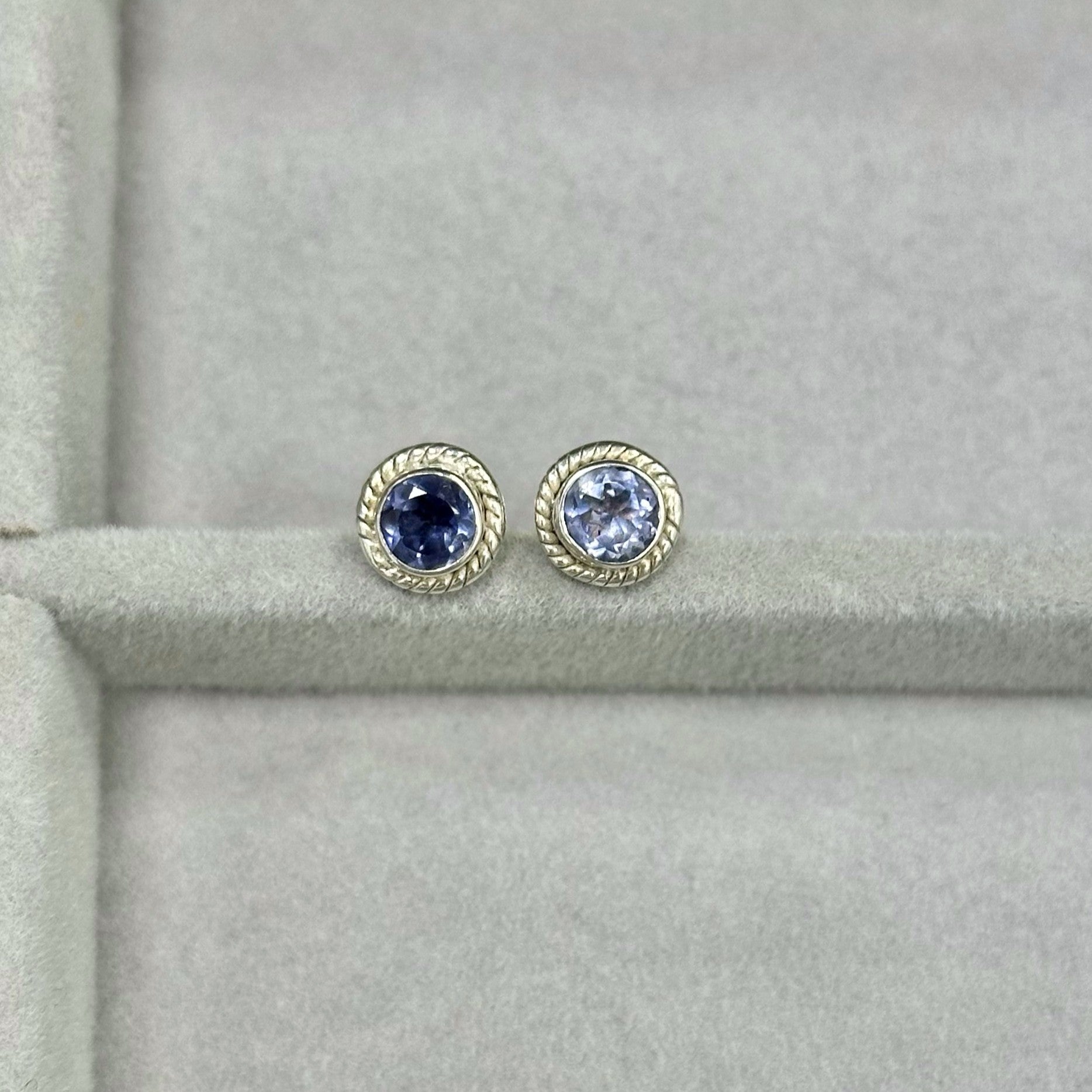 Sidabriniai auskarai su apvaliu jolito akmeniu