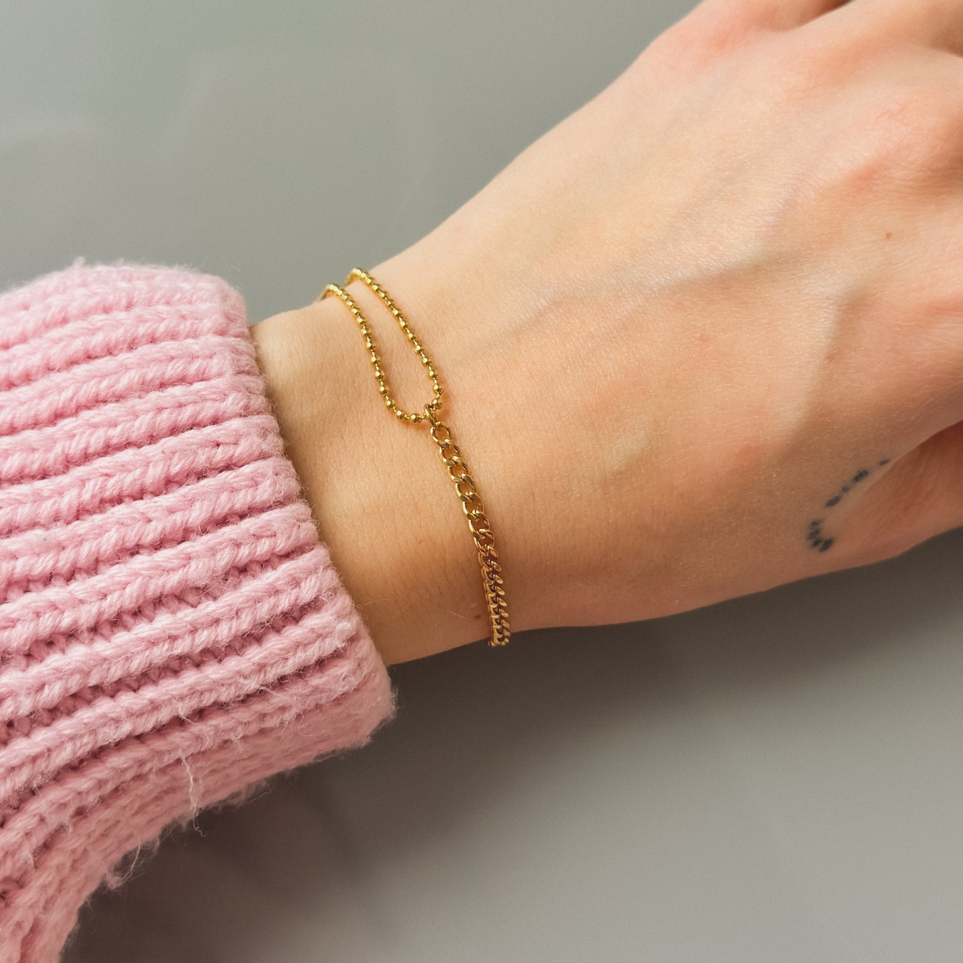Auksuota dvigubo dizaino apyrankė „Ball Bead & Curb“