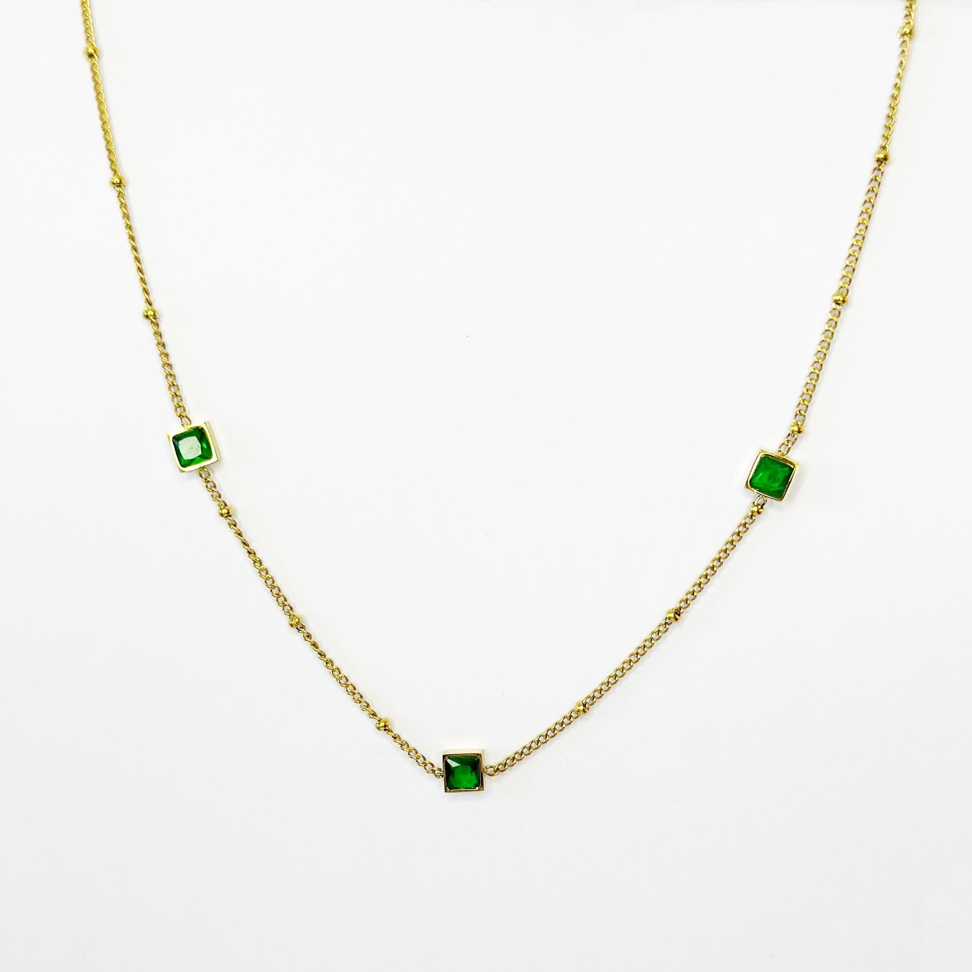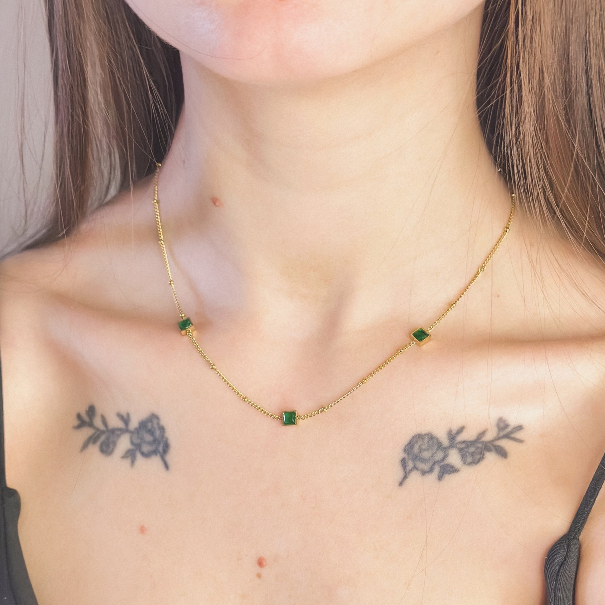 Auksuota grandinėlė su įvairiaspalviais cirkoniais