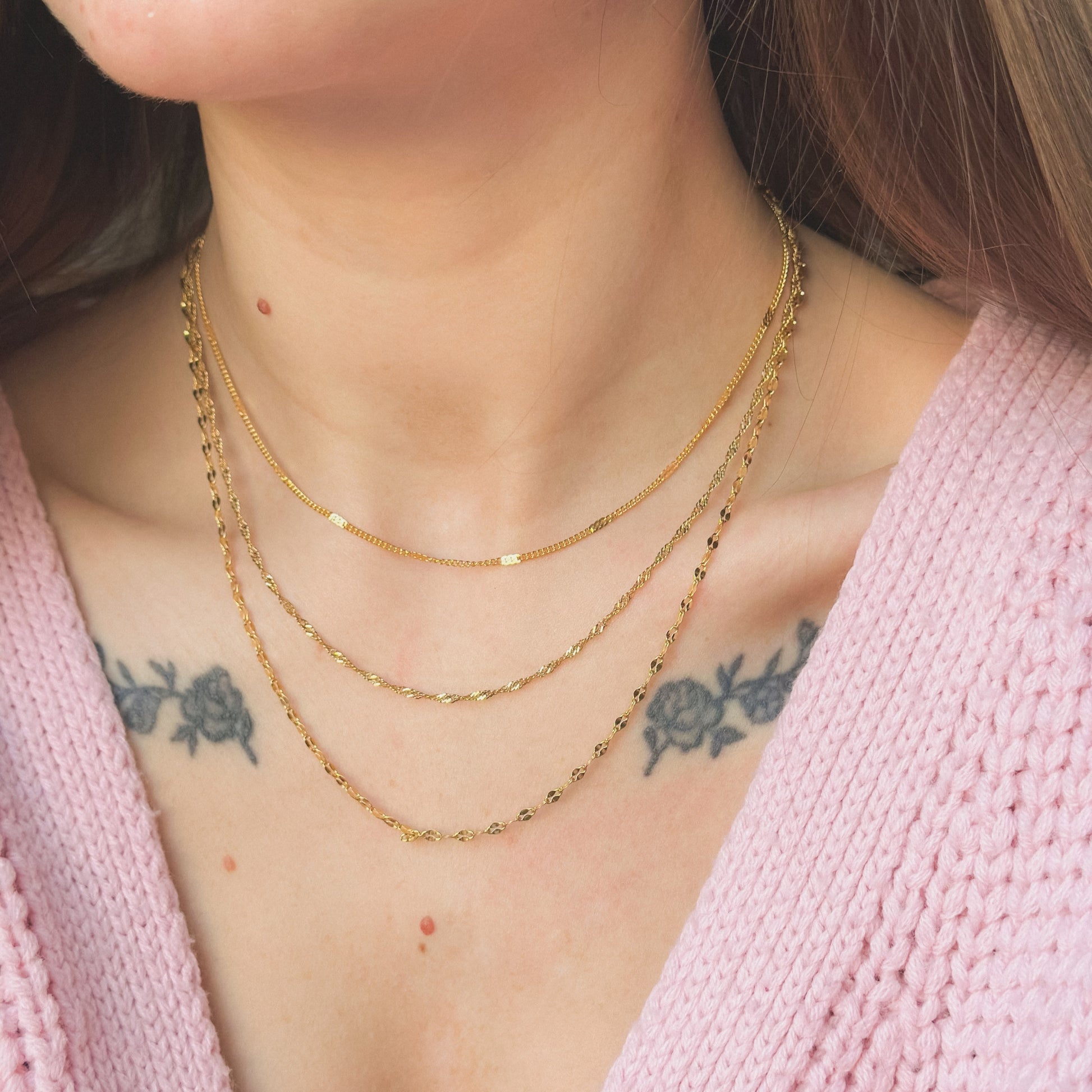 Skirtingų ilgių grandinėlės stilingam sluoksniavimo efektui.