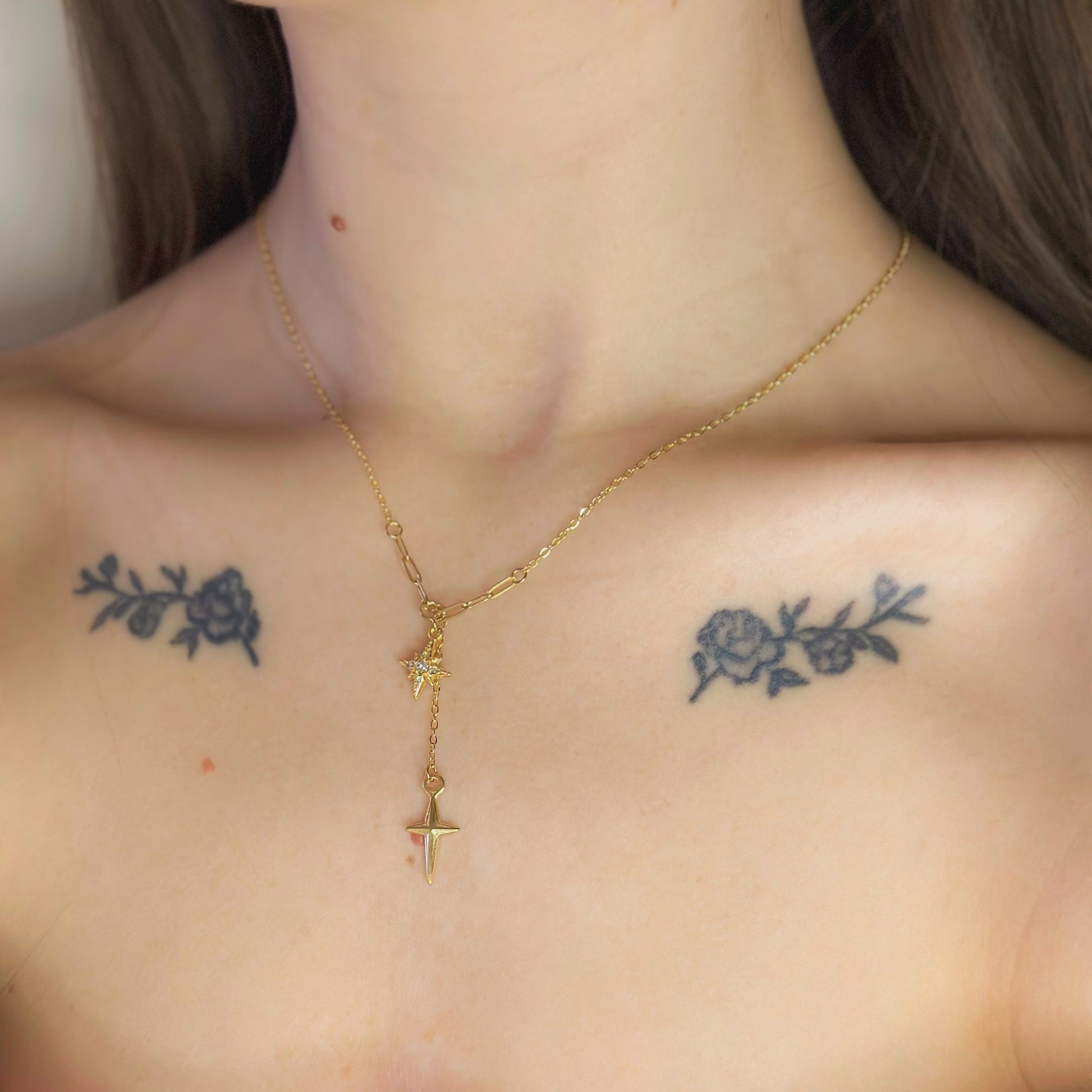 Auksuotas pakabukas su žvaigždutėmis ir cirkoniais