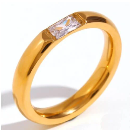 Auksuotas žiedas su stačiakampiu cirkoniu