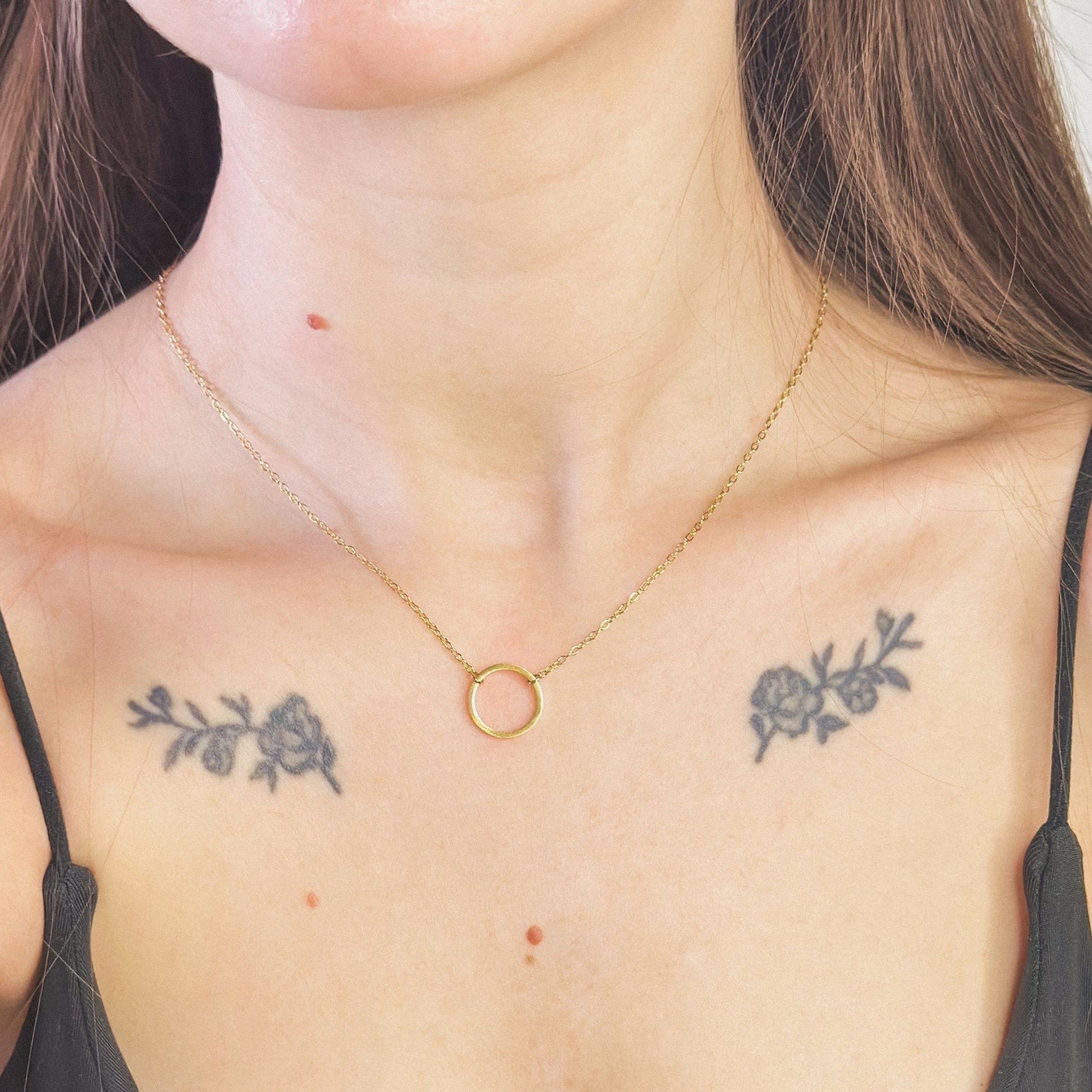Auksuotas apvalus pakabukas su grandinėlė