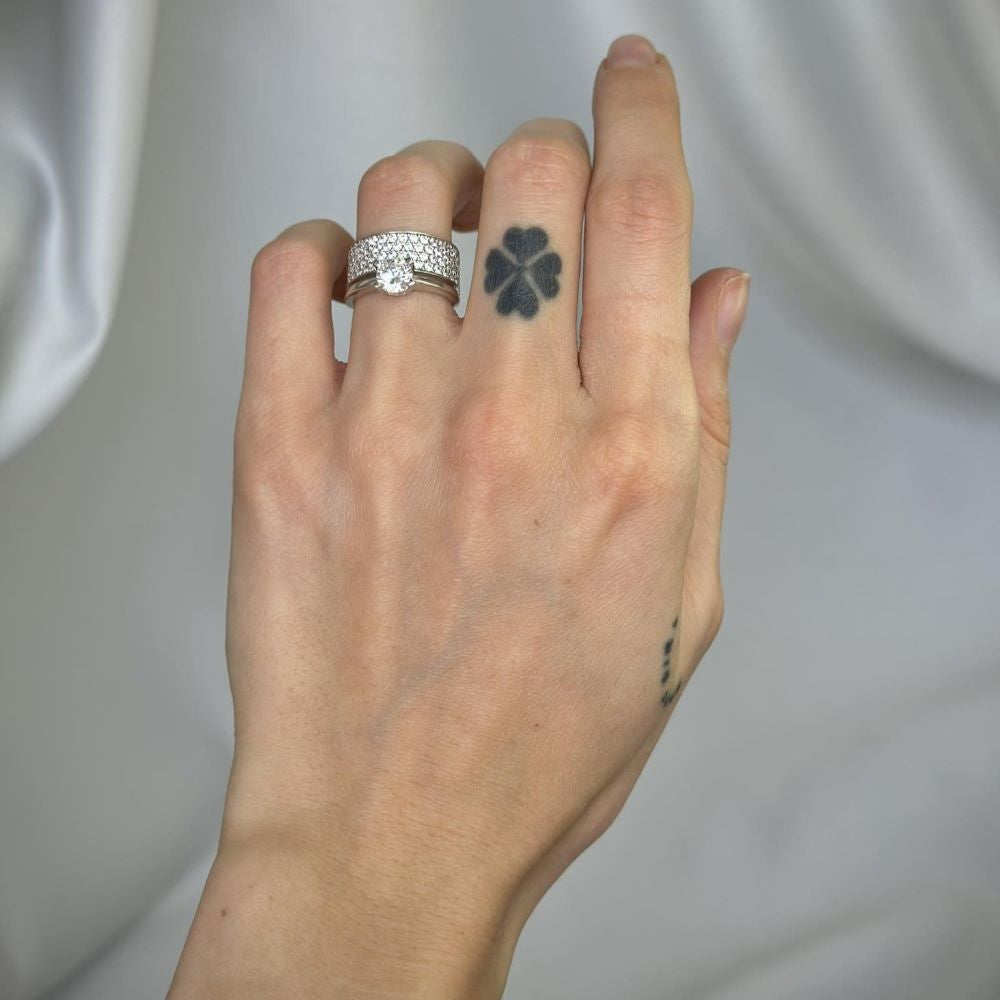 Dvigubas sujungtas žiedas su 4 eilėmis cirkonių
