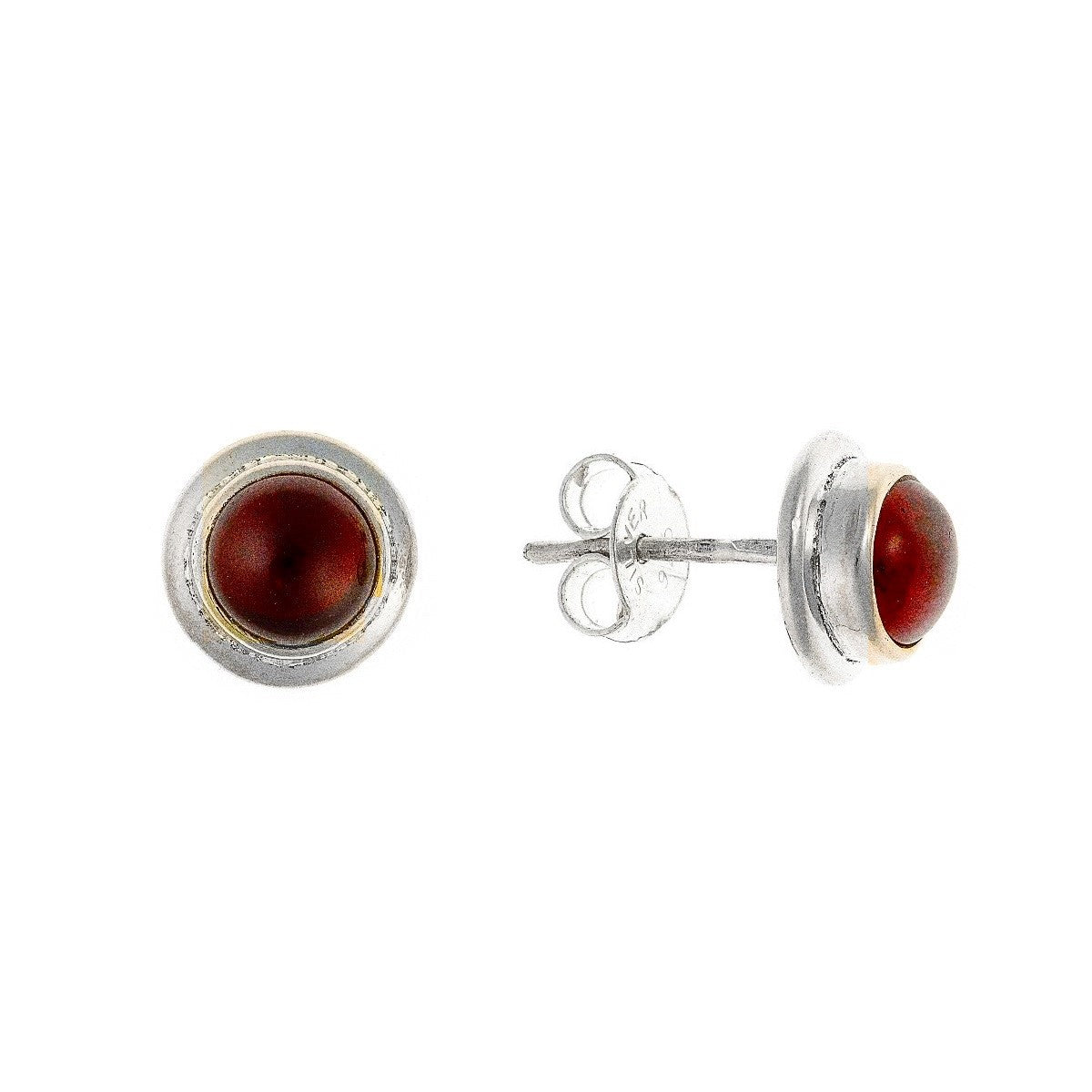 Granatas ¦ sidabriniai apvalūs auskarai su granato akmeniu