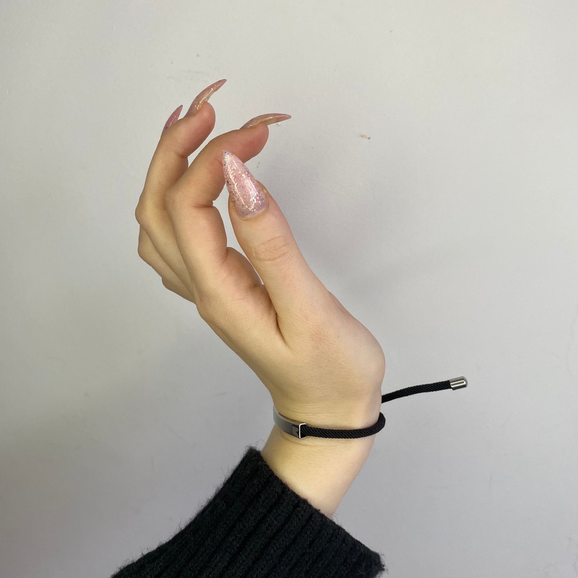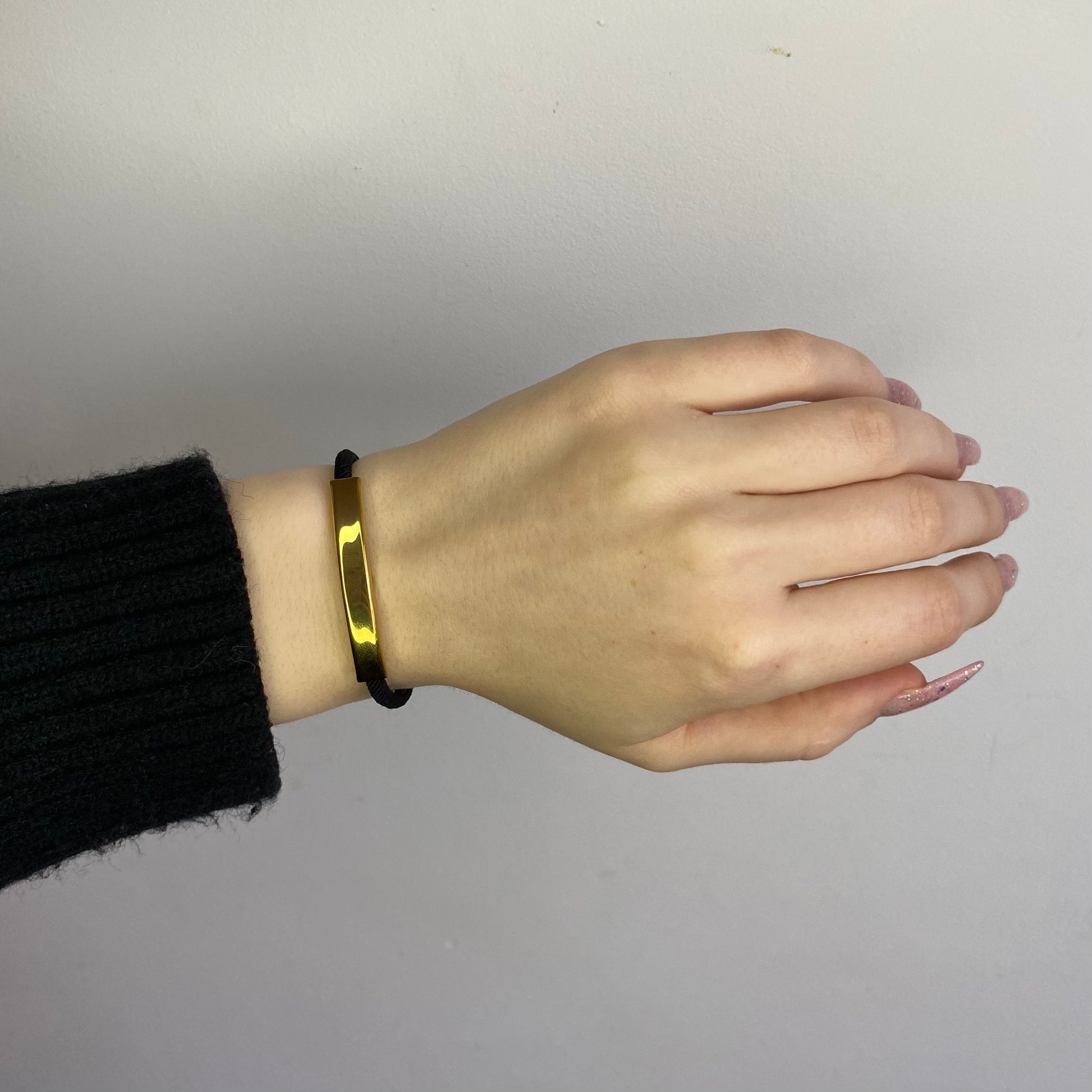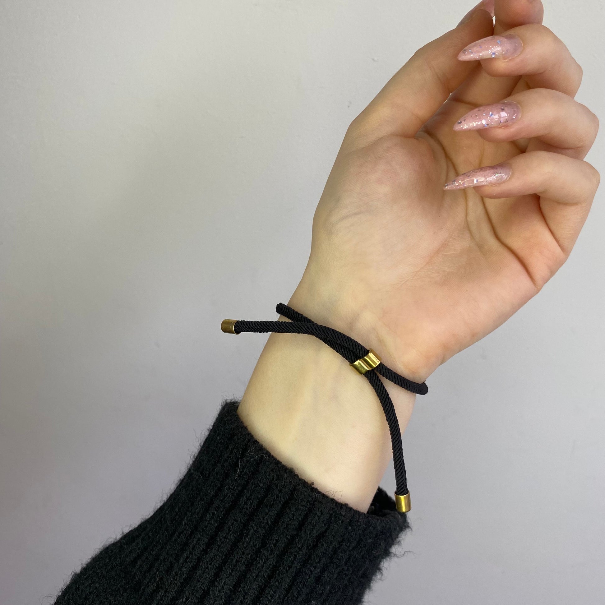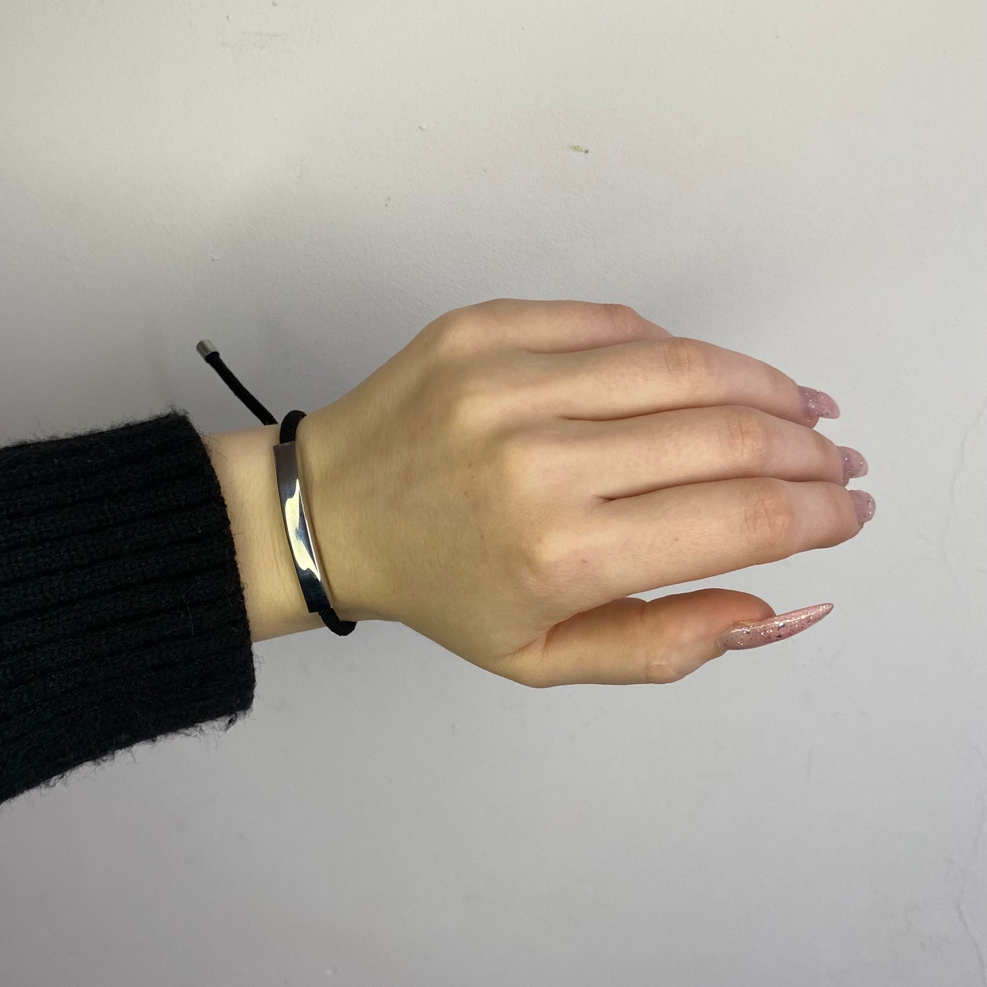 Juodo siūlo apyrankė su plieno detale