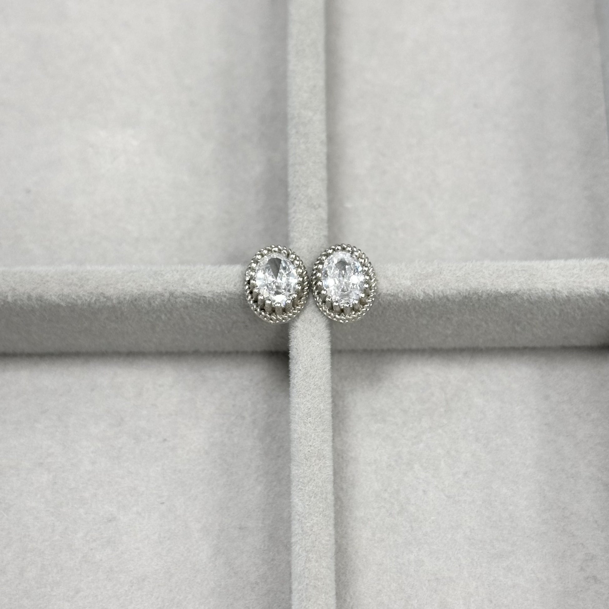 Sidabriniai ovalūs auskarai su skaidriu cirkoniu