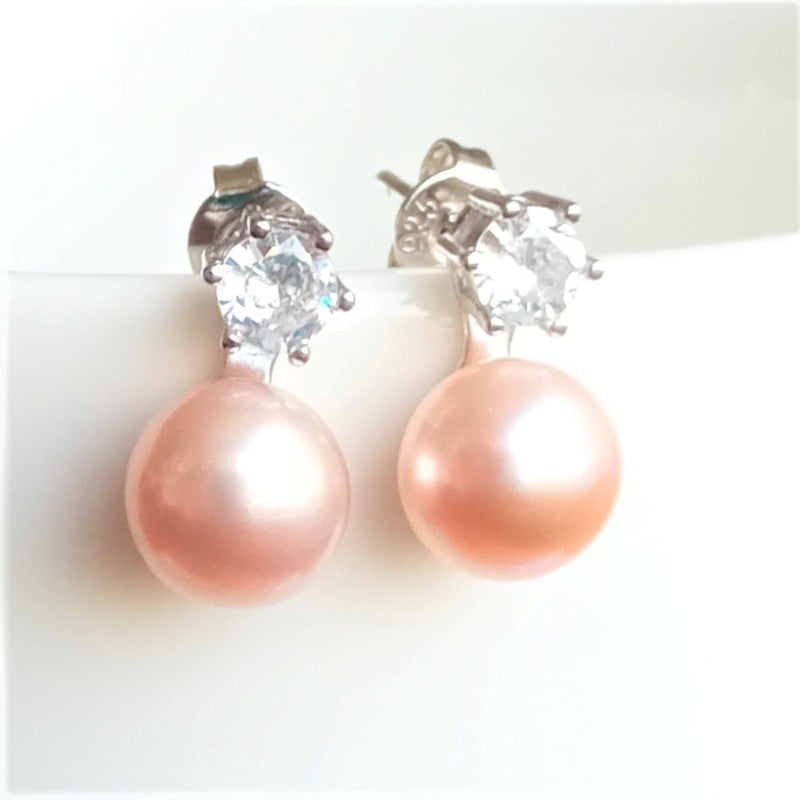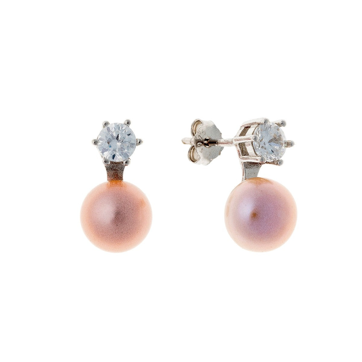 perlai ¦ sidabriniai auskarai su tikru rausvu perlu ir cirkoniu