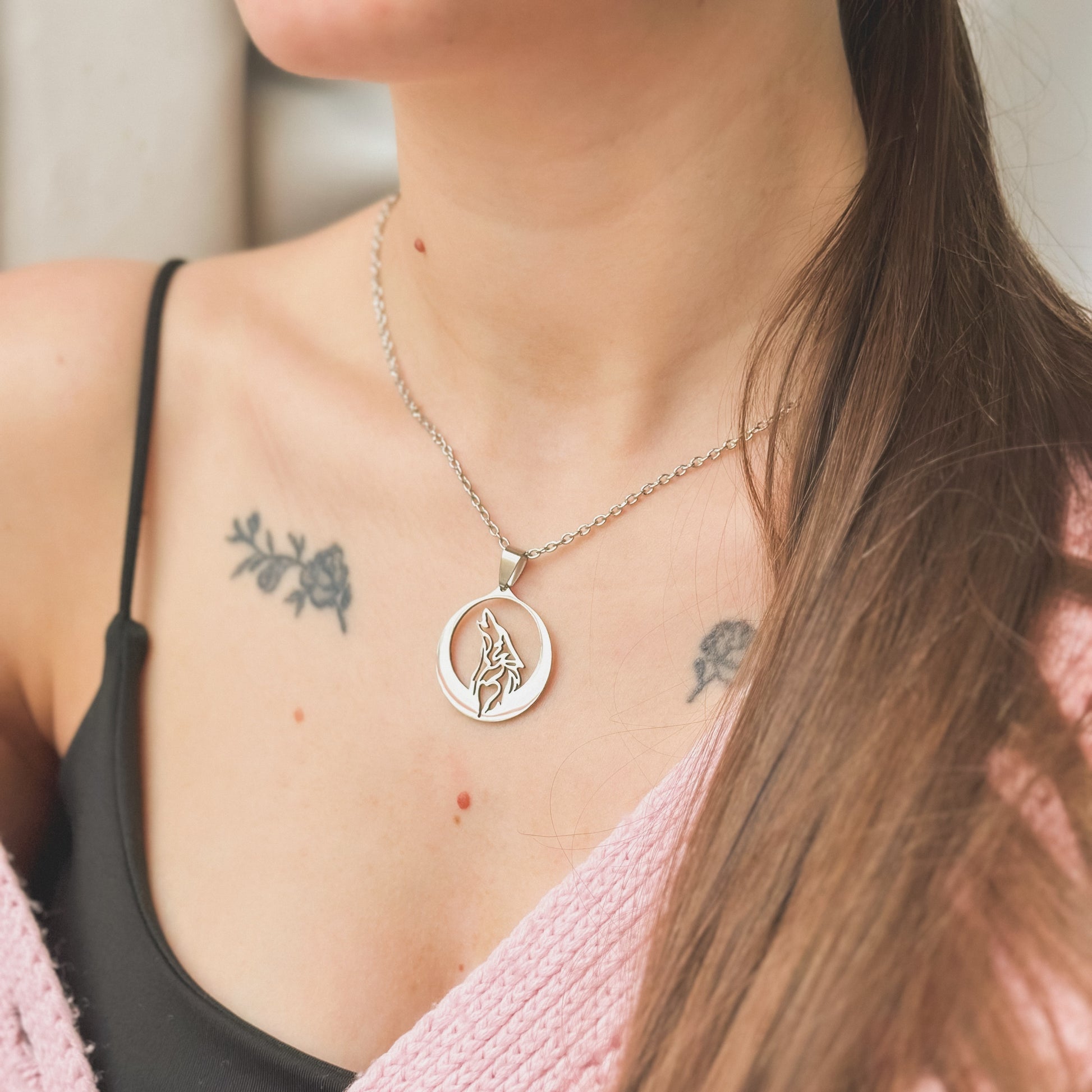 Plieninis pakabukas „Vilkas“ su grandinėle