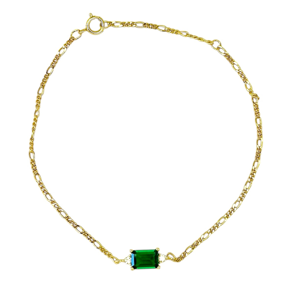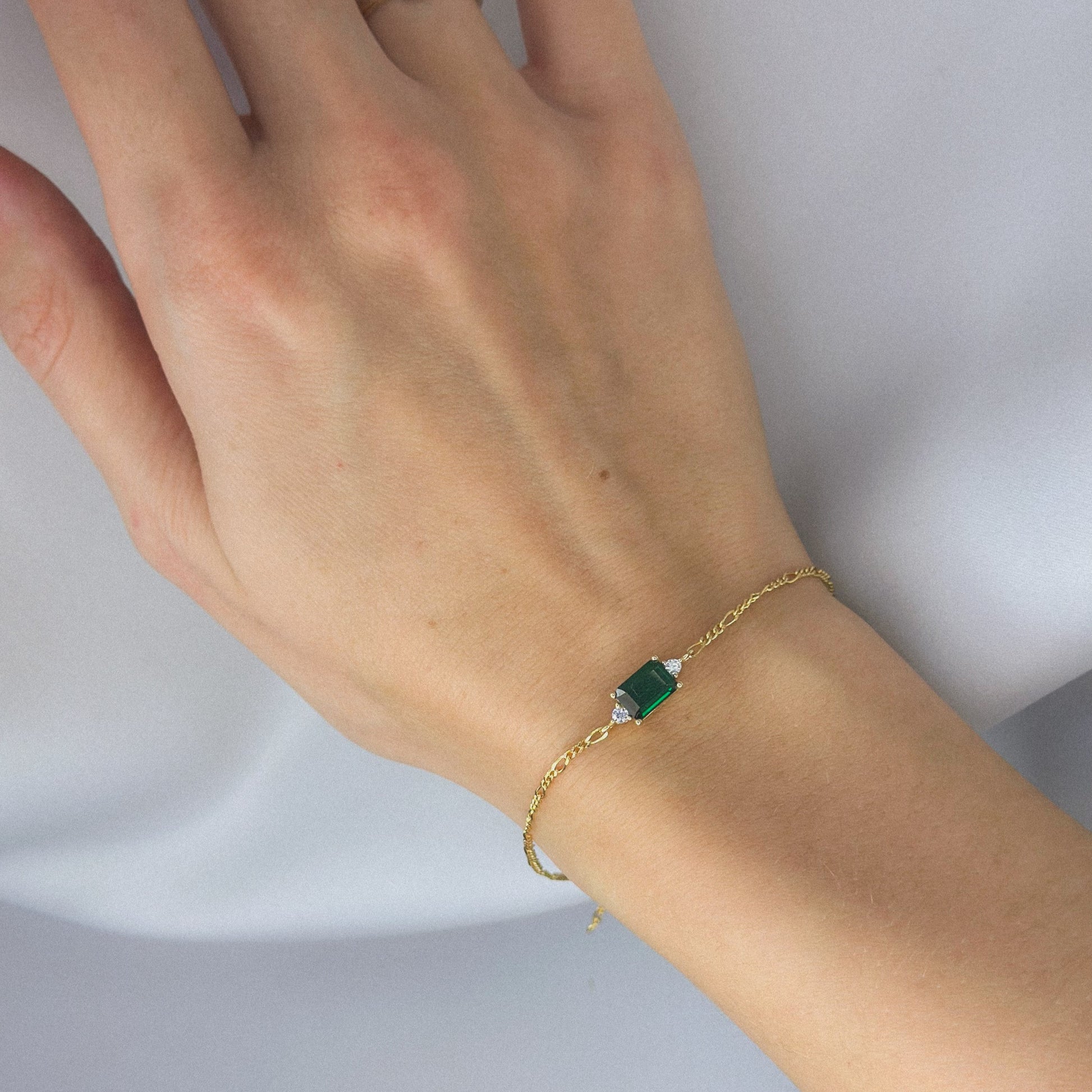 Sidabrinė auksuota apyrankė su žaliu stačiakampiu cirkoniu