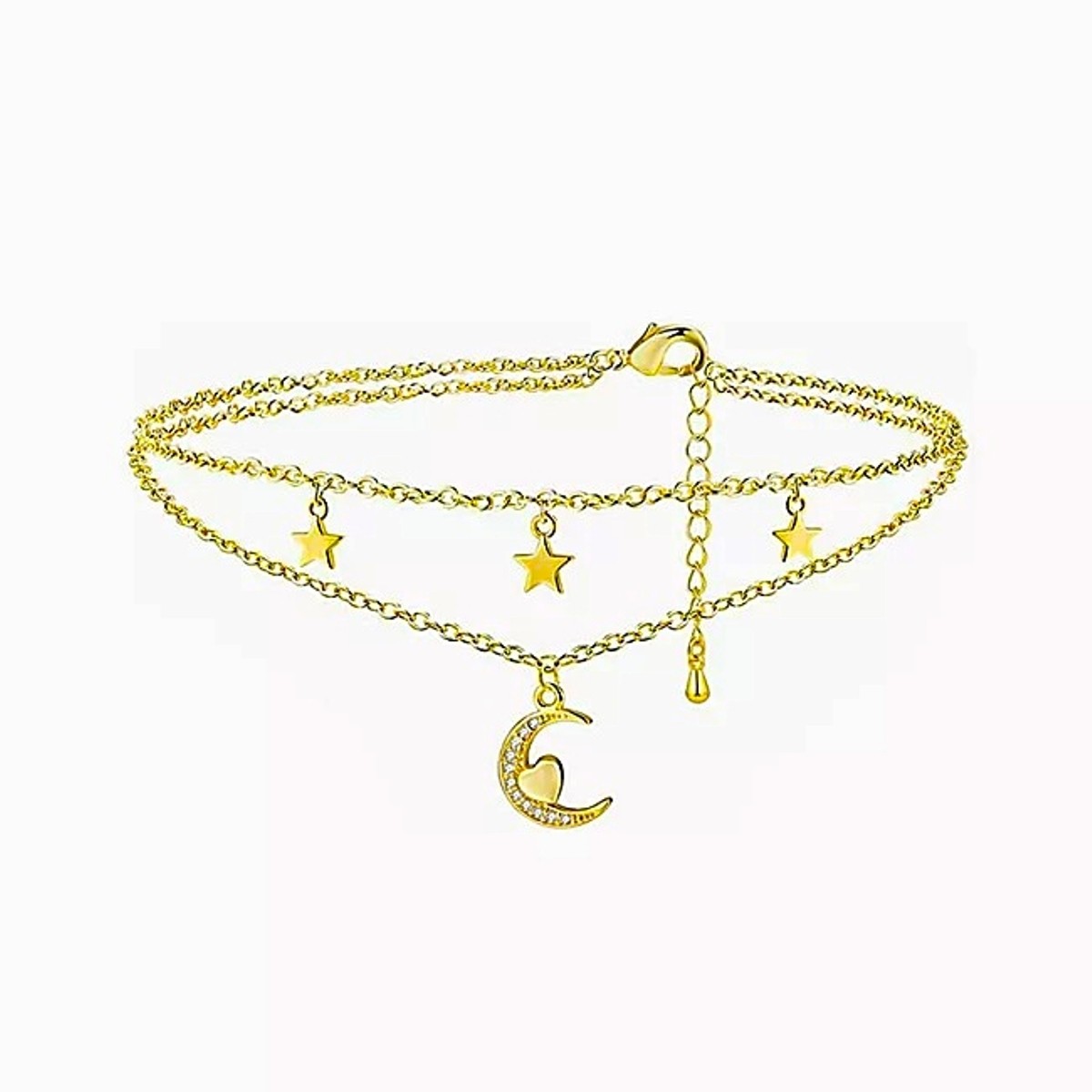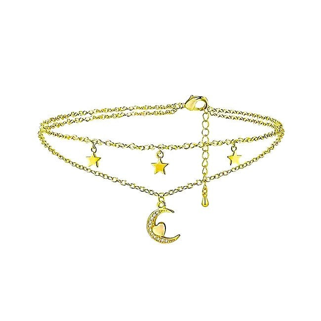 Sidabrinė auksuota grandinėlė ant kojos su mėnuliu