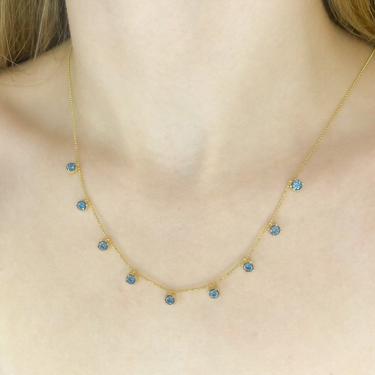 Sidabrinė auksuota kolje su mistinio topazo pakabukais