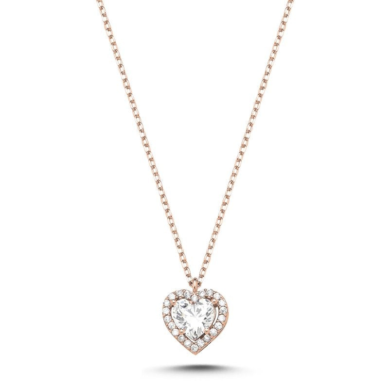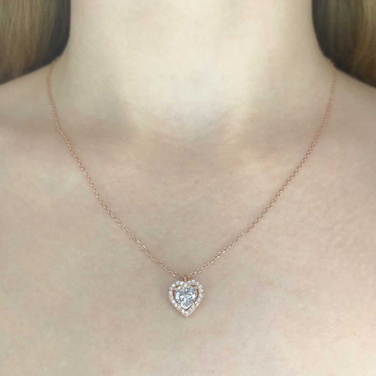 Sidabrinė paauksuota širdelė su cirkoniais ir grandinėle