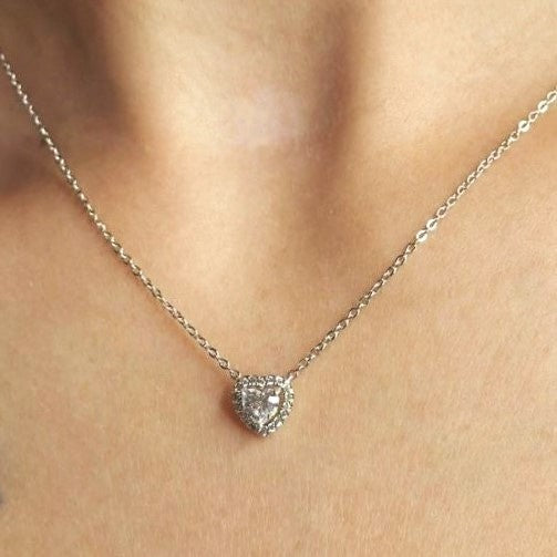 Sidabrinė rodžiuota širdelė su cirkoniais ir grandinėle