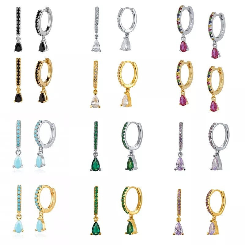 Sidabrinės auksuotos 1,2cm dydžio rinkutės su įvairių spalvų cirkoniais