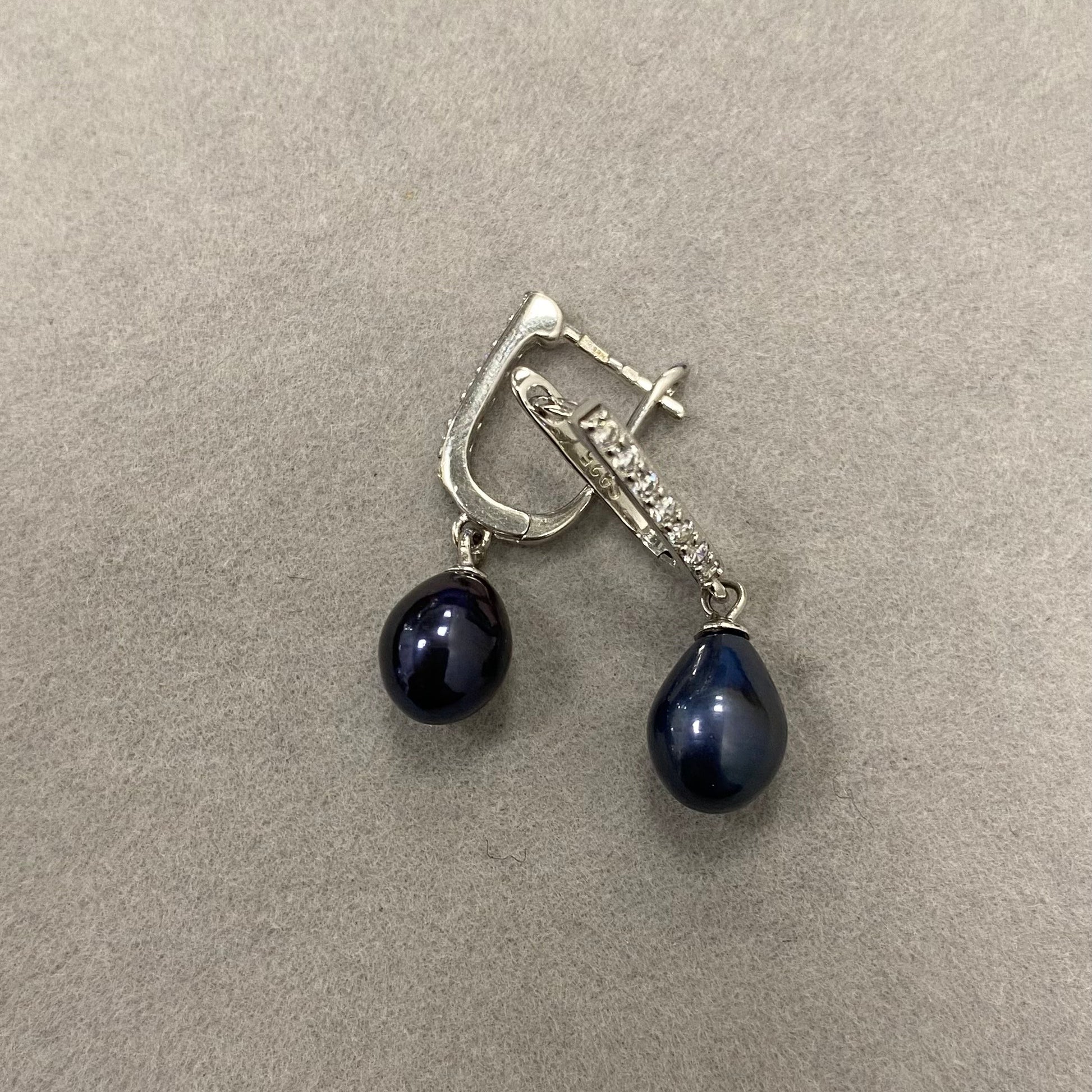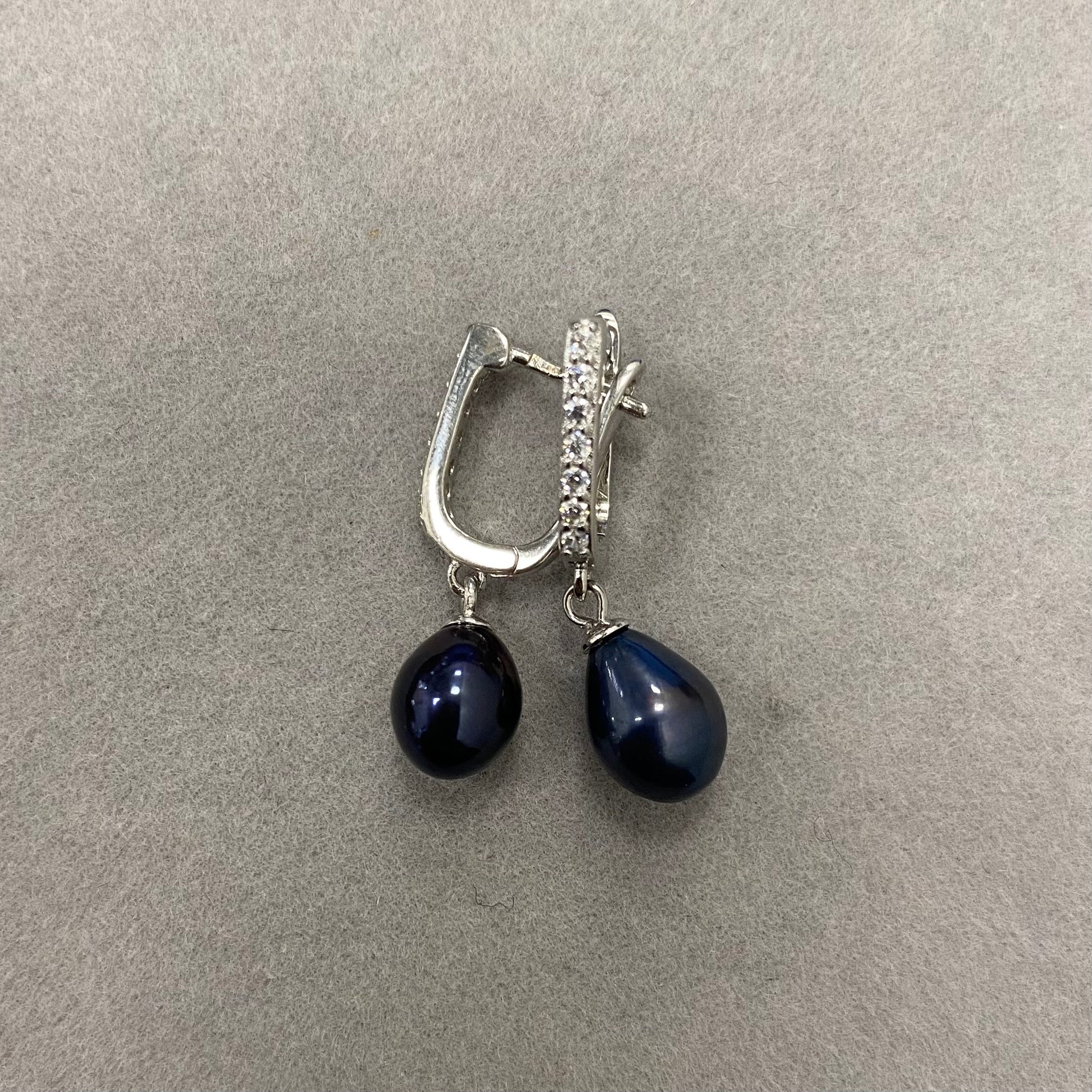 Sidabriniai kabantys auskarai su tamsiuoju perlu