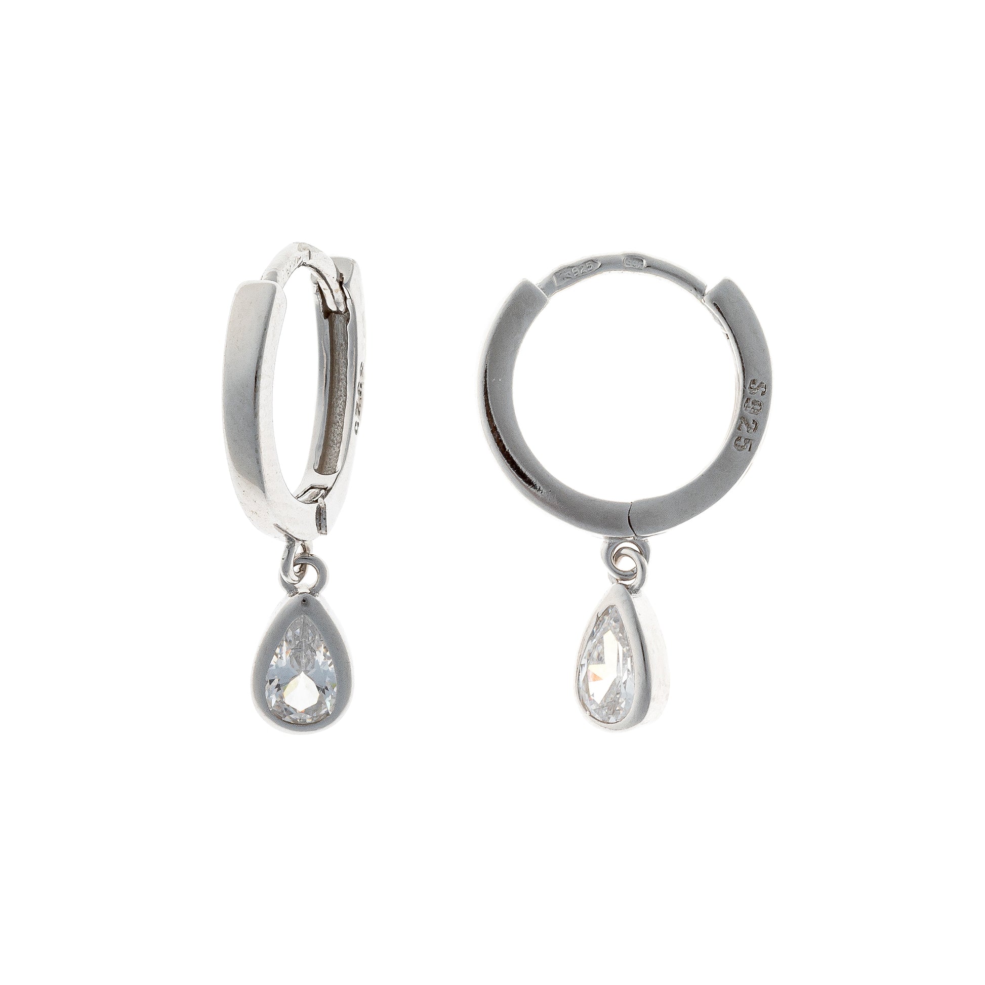 Sidabrinės rodžiuotos rinkutės su kabančiu cirkoniu