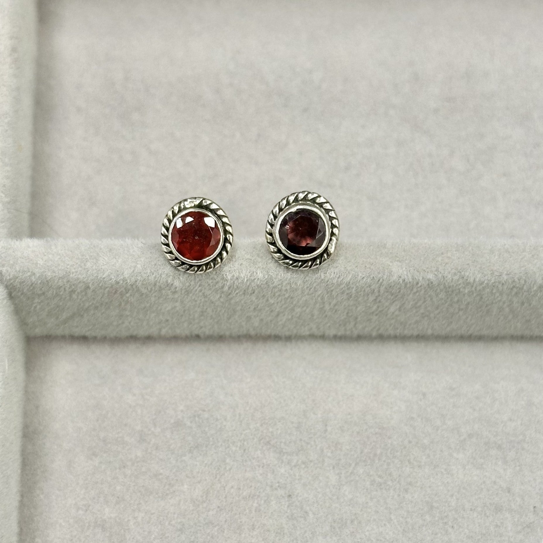 Sidabriniai apvalūs auskarai su granato akmeniu