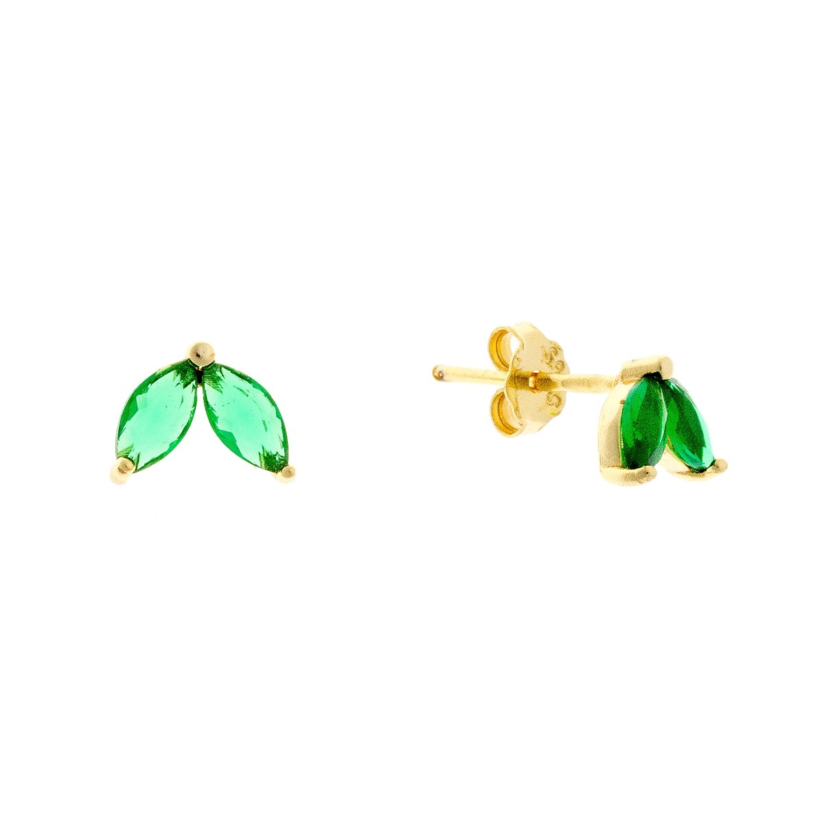Sidabriniai auksuoti auskarai su žaliais cirkoniais